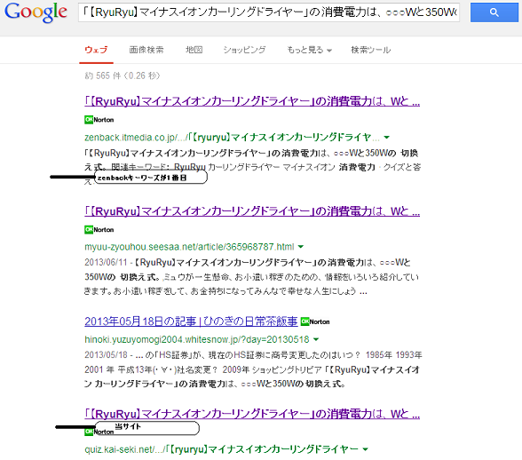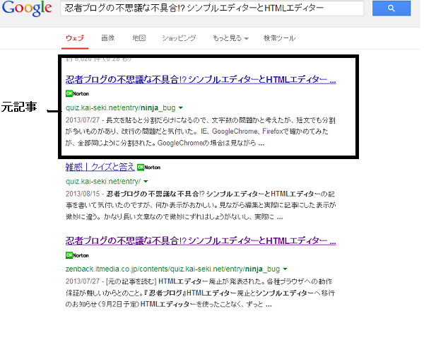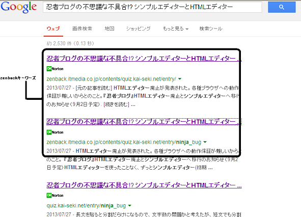 ブログの記事タイトルで検索してみると、zenbackキーワーズのページが元記事より上位にくる事が度々。