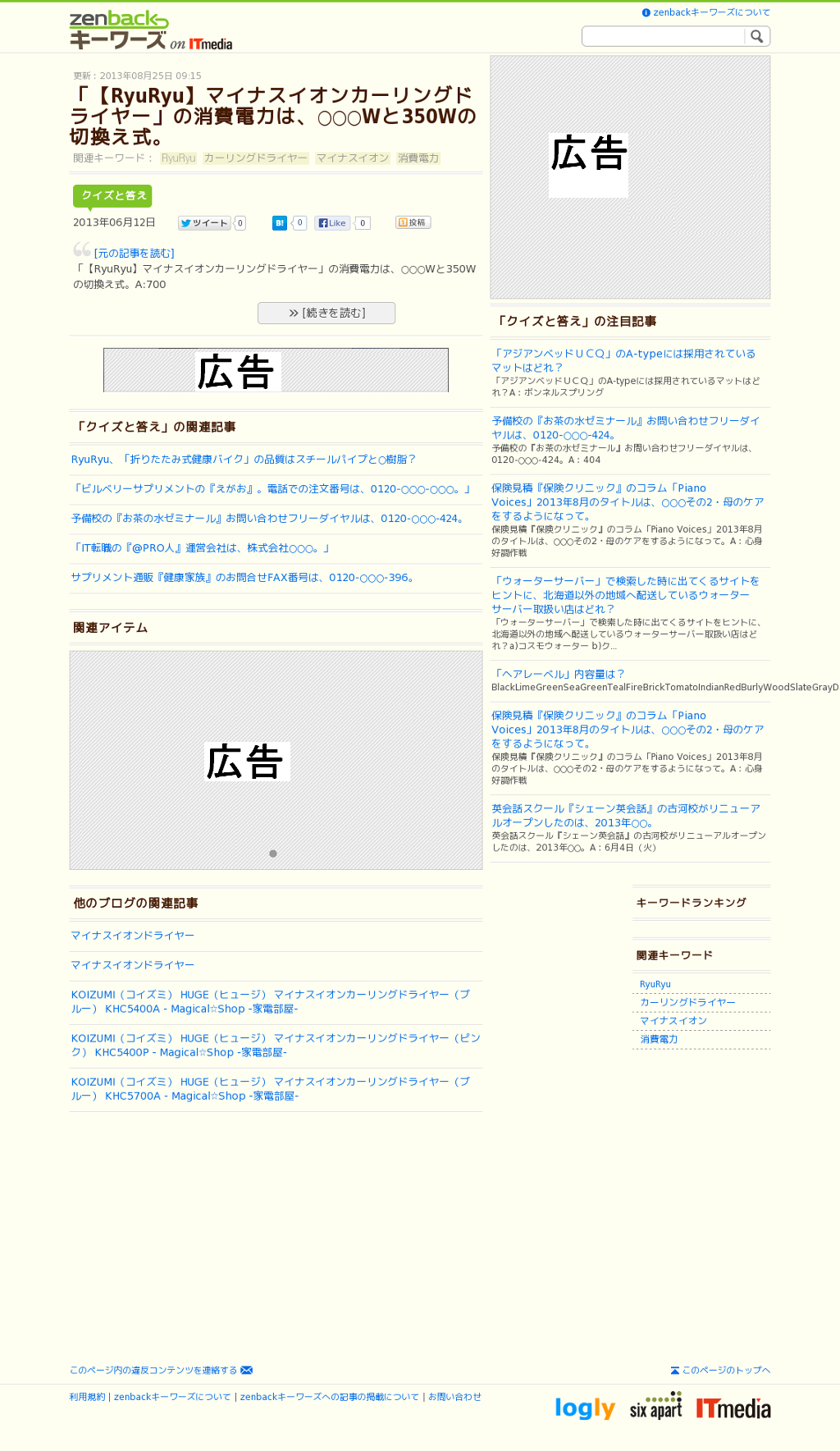 記事によってはzenbackキーワーズが2つも。